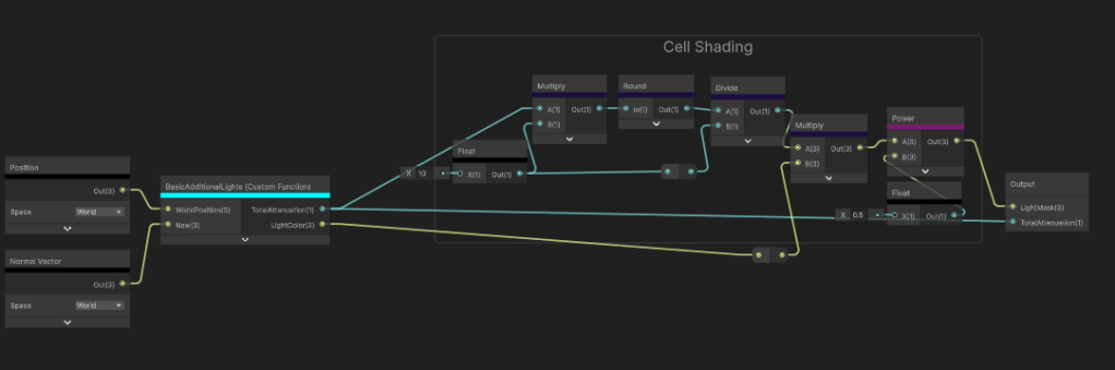 void BasicAdditionalLights_half(float3 WorldPosition, float3 WorldNormal, out float TotalAttenuation, out float3 LightColor)