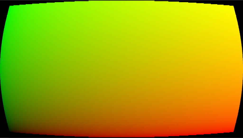 To get a curve I squared the warped UV and added back to the centred UV. I combined both the vignette and warped UV because the vignette needed the calculated UV. It was just cheaper that way. I cull out anything outside the the 0-1 range to get the shape. The UV ends up looking like this: